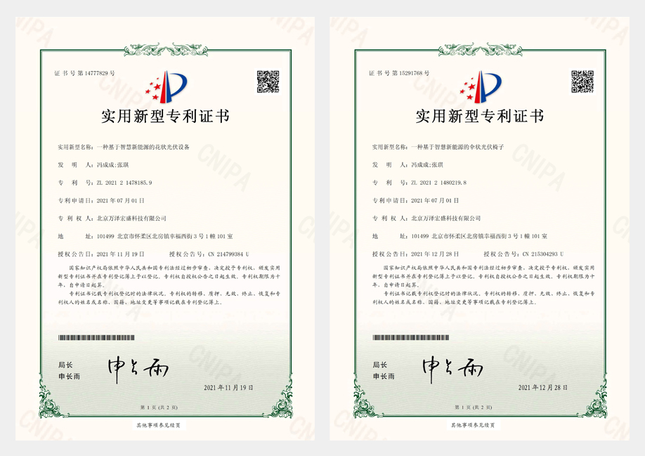 萬澤宏盛就光伏應用產品,研發設計了多系列實用型產品,這些產品可用于城市社區,也可用于景區園林